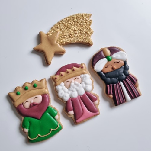 Ya llegan los Reyes de Oriente en galletas artesanales de Navidad, horneadas a base de mantequilla y glasa real de alta calidad. Se entregan en bolsitas de celofán individuales, también se pueden presentar en cajitas para regalar. Disfruta de nuestras galletas dulces de Navidad, realizados artesanalmente, con sabores de vainilla o jengibre.
