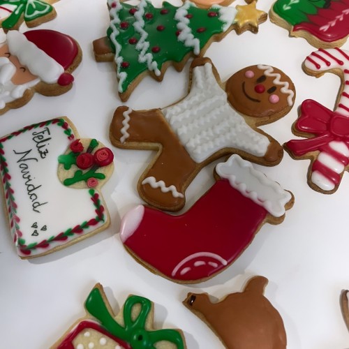 Galletas artesanales de Navidad, variadas, horneadas a base de mantequilla y glasa real de alta calidad. Se entregan en bolsitas de celofán individuales, también se pueden presentar en cajitas para regalar. Disfruta de nuestras galletas dulces de Navidad, realizados artesanalmente, con sabores de vainilla o jengibre.