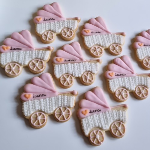 Galleta hecha a base de mantequilla decorada con Royal Icing de alta calidad, para regalar como detalle en fiestas de bautizos o baby shower o para decorar en la mesa dulce del candy bar.