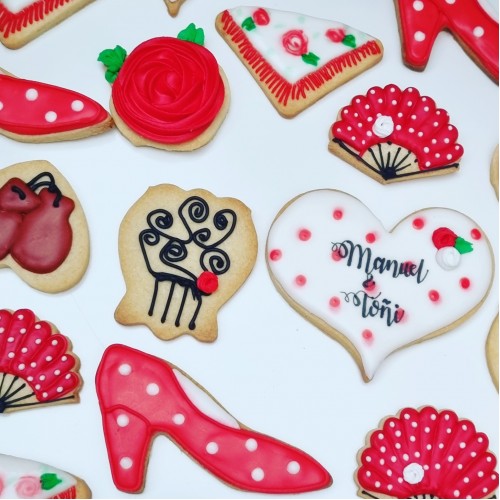 Galletas variadas para Boda Flamenca y otros eventos. Tamaño pequeño, pueden embolsarse varias unidades.
