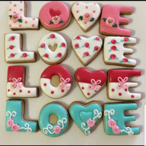 Galletas hechas a base de mantequilla decorada con Royal Icing de alta calidad, con la palabra Love para celebrar San Valentín o regalar a tu pareja.