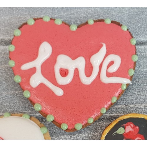 Galleta en forma de corazón, un bonito regalo para San Valentín, decoradas con royal icing o glasa real y personalizadas con varios diseños especiales para el día de los enamorados.